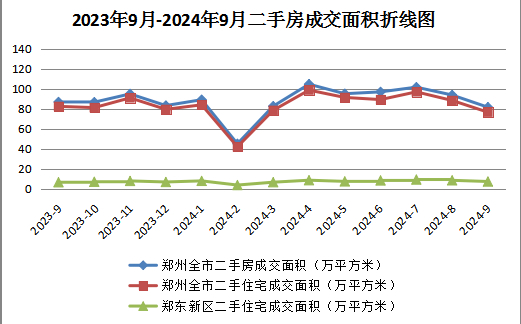 2024年9月份,郑州全市商品房销售7647套(间),销售面积79.03万平方米,销售均价9144元/平方米;其中商品住宅销售5484套,销售面积61.78万平方米,销售均价9809元/平方米。郑州全市二手房共成交7690套(间),成交面积81.51万平方米,成交均价9158元/平方米;其中住宅二手房共成交7259套,成交面积76.55万平方米,成交均价9224元/平方米;郑东新区住宅二手房共成交558套,成交面积7.47万平方米,成交均价14829元/平方米。
